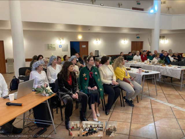 W sobotę 13 grudnia członkowie i goście „Domu Polskiego”, wśród których była prezes FPANK „Kongres Polaków w Rosji” Halina Subotowicz-Romanowa, tradycyjnie zebrali się w kurii Katedry pw. Niepokalanego Poczęcia NMP, aby wspólnie uczcić nadchodzące Boże Narodzenie. Młodzież i dzieci wraz z zespołem wokalno-teatralnym „Wisła” odegrali kilka scenek bożonarodzeniowych. Ze sceny wybrzmiały świąteczne deklamacje, a członkinie chóru „Baśki" zaśpiewały kolędy przy akompaniamencie fortepianu. Do śpiewania kolęd dołączyła się również publiczność. Artystyczną część wieczoru zakończył Nikita Frołow, wykonując swój nowy hit „Małe mieszkanko na Mariensztacie". Następnie zgromadzonych pobłogosławił ojciec Dariusz. Dzieci otrzymały bożonarodzeniowe prezenty. Po przełamaniu się opłatkiem i wzajemnych życzeniach wszyscy udali się do wigilijnych stołów z tradycyjnymi potrawami przygotowanymi przez członków organizacji.