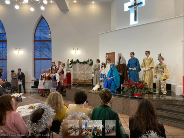 W sobotę 13 grudnia członkowie i goście „Domu Polskiego”, wśród których była prezes FPANK „Kongres Polaków w Rosji” Halina Subotowicz-Romanowa, tradycyjnie zebrali się w kurii Katedry pw. Niepokalanego Poczęcia NMP, aby wspólnie uczcić nadchodzące Boże Narodzenie. Młodzież i dzieci wraz z zespołem wokalno-teatralnym „Wisła” odegrali kilka scenek bożonarodzeniowych. Ze sceny wybrzmiały świąteczne deklamacje, a członkinie chóru „Baśki" zaśpiewały kolędy przy akompaniamencie fortepianu. Do śpiewania kolęd dołączyła się również publiczność. Artystyczną część wieczoru zakończył Nikita Frołow, wykonując swój nowy hit „Małe mieszkanko na Mariensztacie". Następnie zgromadzonych pobłogosławił ojciec Dariusz. Dzieci otrzymały bożonarodzeniowe prezenty. Po przełamaniu się opłatkiem i wzajemnych życzeniach wszyscy udali się do wigilijnych stołów z tradycyjnymi potrawami przygotowanymi przez członków organizacji.